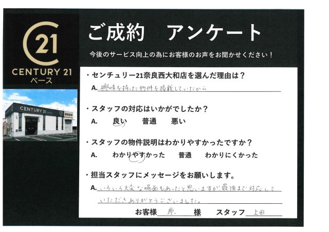 ・センチュリー21奈良西大和店を選んだ理由は?